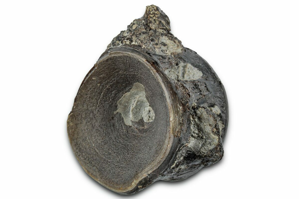 This is a 1.8" wide fossil fish vertebra, collected from the Smoky Hill Chalk in Gove County, Kansas.