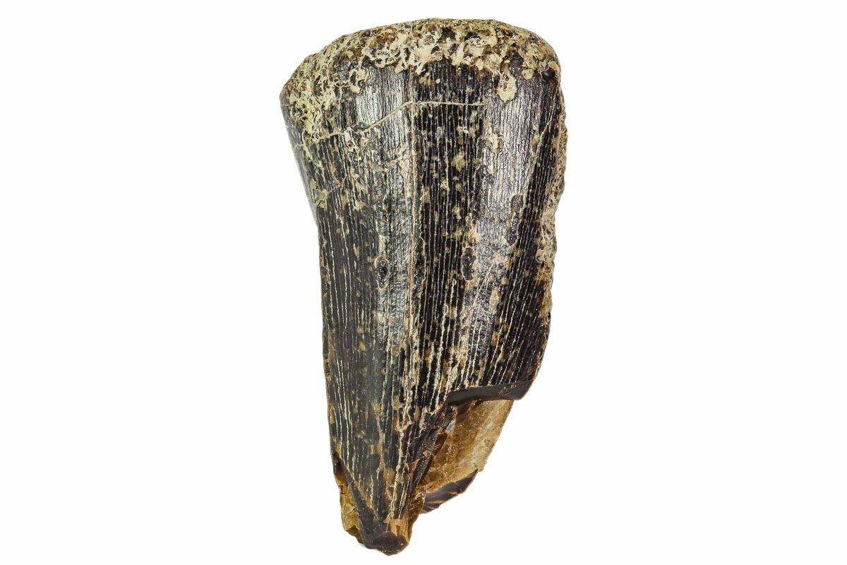 This is a 1.8" long, tooth fragment of a Mosasaur from North Sulfur River, Texas. There are several types of Mosasaur's known from this formation, so identifying an individual tooth to a genus or species is difficult.