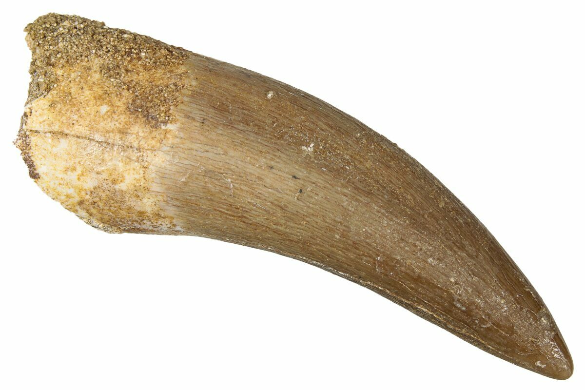This is a 1.82" tooth from the Cretaceous marine reptile Zarafasaura oceanis, a long-necked plesiosaur known from the phosphate-rich Oulad Abdoun Basin of Morocco. The enamel displays nice preservation and natural coloration.