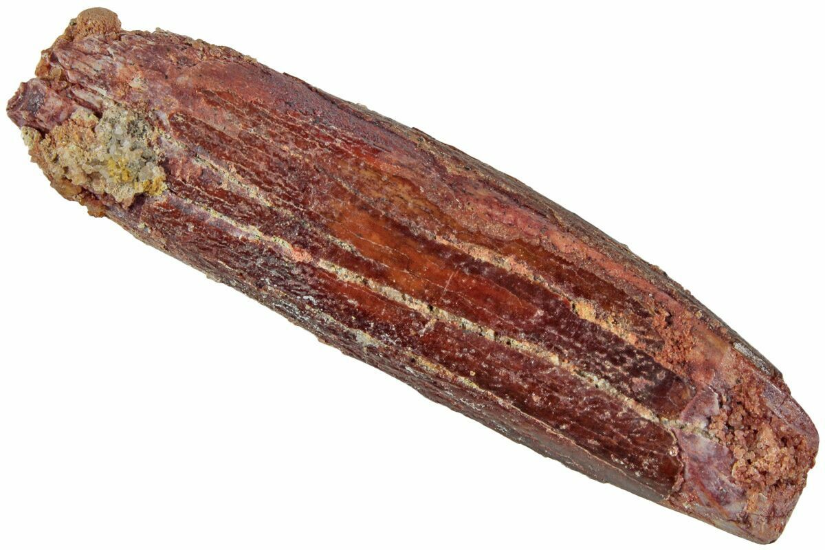 This is a 1.82" long tooth from a Moroccan titanosaur that is currently unidentified. It comes from the Late Cretaceous, Kem Kem Beds of Morocco, home to such meat eating giants as Spinosaurus and Carcharodontosaurus.