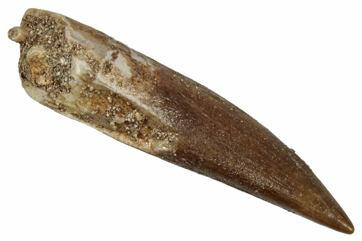 This is a 1.83" tooth from the Cretaceous marine reptile Zarafasaura oceanis, a long-necked plesiosaur known from the phosphate-rich Oulad Abdoun Basin of Morocco. The enamel displays nice preservation and natural coloration.