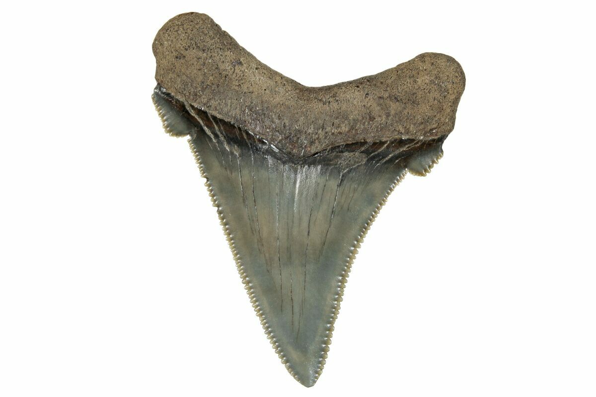 This is a beautiful, serrated, 1.85" long fossil Otodus angustidens shark tooth. Angustidens is believed to be an ancestor of the fearsome Megalodon shark, though it did not grow nearly as large.