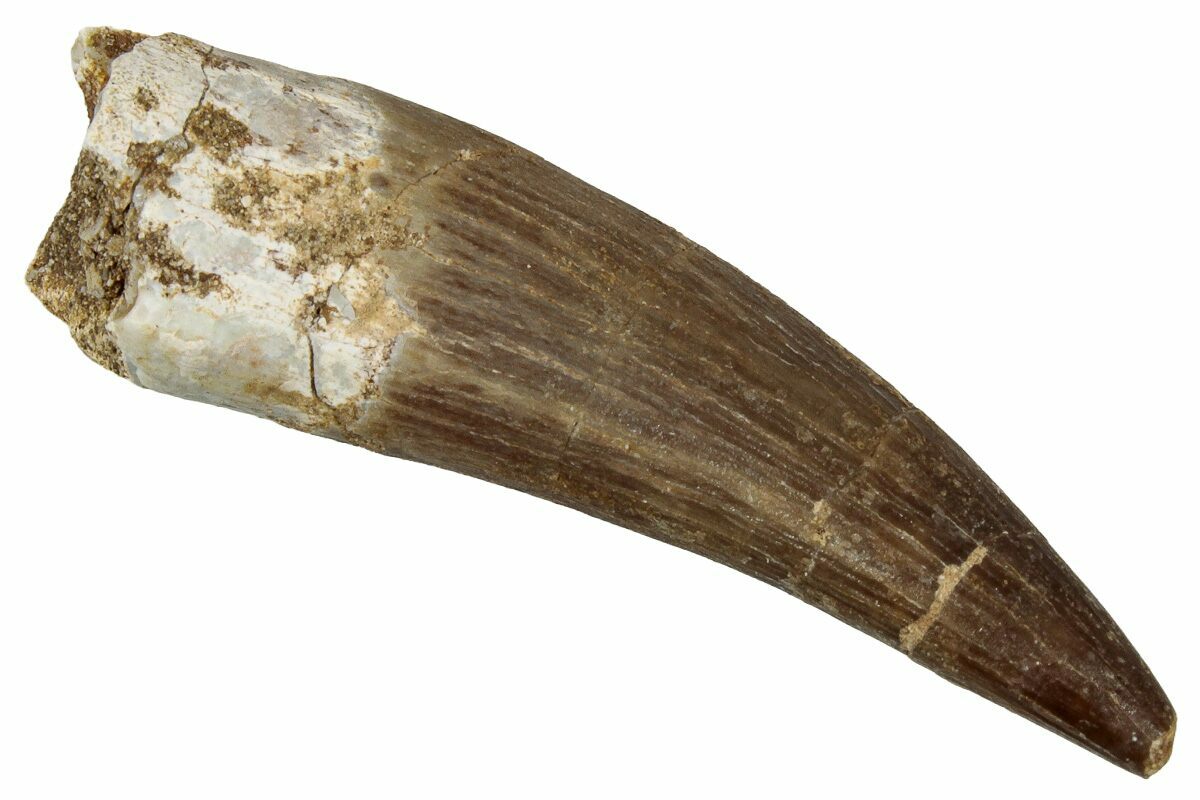 This is a 1.87" tooth from the Cretaceous marine reptile Zarafasaura oceanis, a long-necked plesiosaur known from the phosphate-rich Oulad Abdoun Basin of Morocco. The enamel displays nice preservation and natural coloration.
