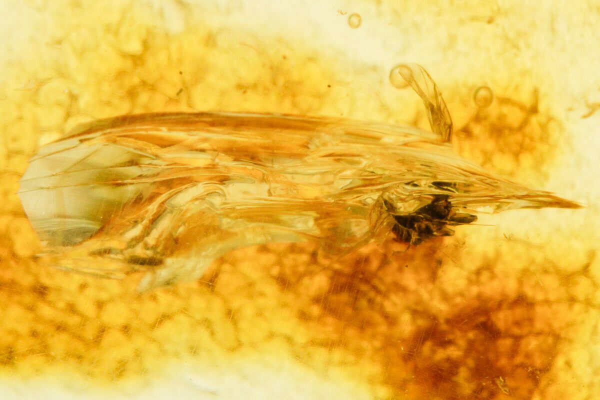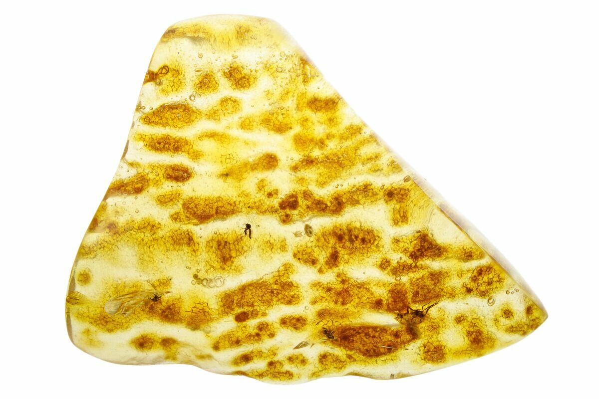 Amber is fossilized tree resin that frequently contains inclusions such as plant matter, fungi, and insects. Copal is a younger resin that has not fully fossilized, but may still be tens of thousands to several million years old. This copal is often marketed as "young amber", which many consider a misnomer, but the exact line between copal and amber is a little bit blurry. This is especially true with modern treatment techniques that can artificially age copal into amber.