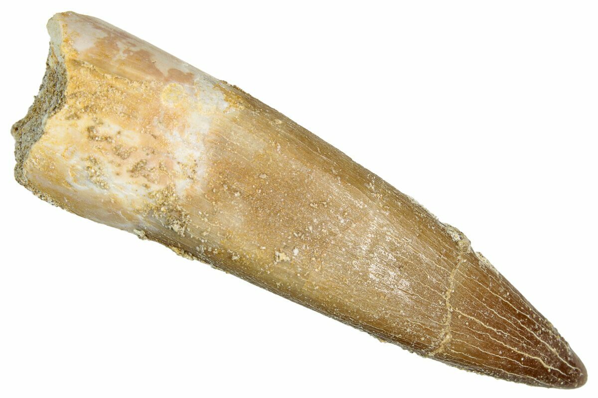 This is a 1.88" tooth from the Cretaceous marine reptile Zarafasaura oceanis, a long-necked plesiosaur known from the phosphate-rich Oulad Abdoun Basin of Morocco. The enamel displays nice preservation and natural coloration.