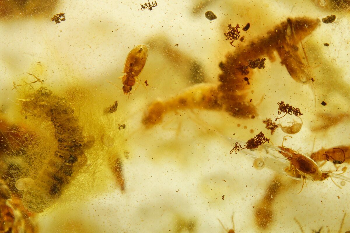 Amber is fossilized tree resin that frequently contains inclusions such as plant matter, fungi, and insects. Copal is a younger resin that has not fully fossilized, but may still be tens of thousands to several million years old. This copal is often marketed as "young amber", which many consider a misnomer, but the exact line between copal and amber is a little bit blurry. This is especially true with modern treatment techniques that can artificially age copal into amber.