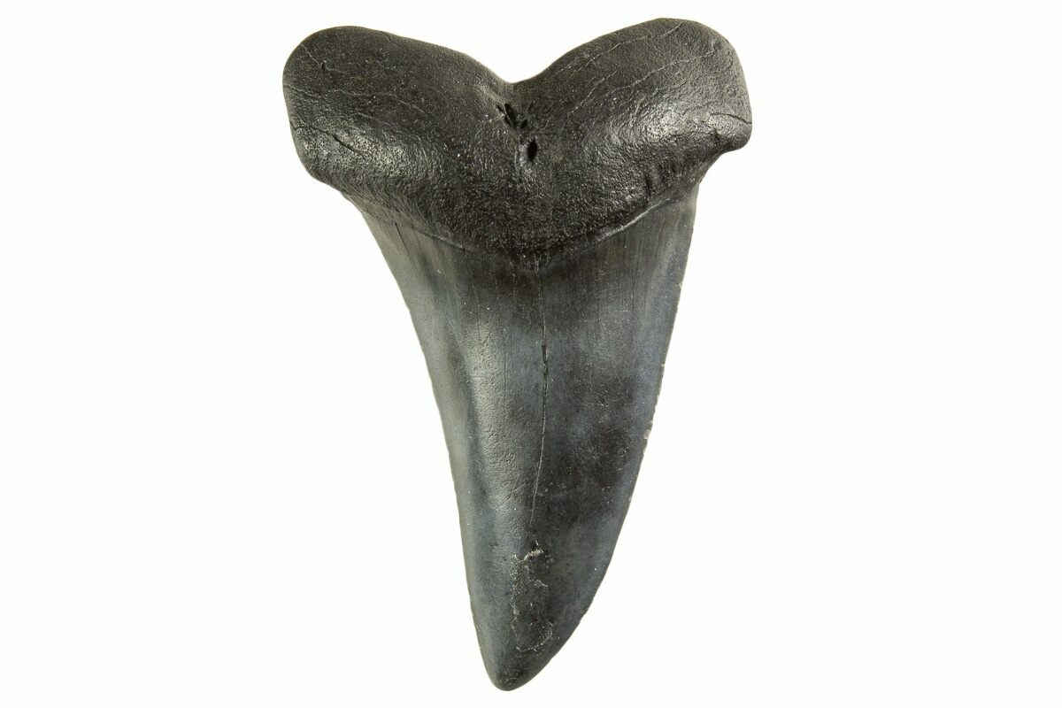 This is a 1.93" long fossil white shark (Carcharodon (Cosmopolitodus) sp.) tooth from the Hawthorn Formation. It was collected in South Carolina after it eroded out of the Hawthorn Formation.