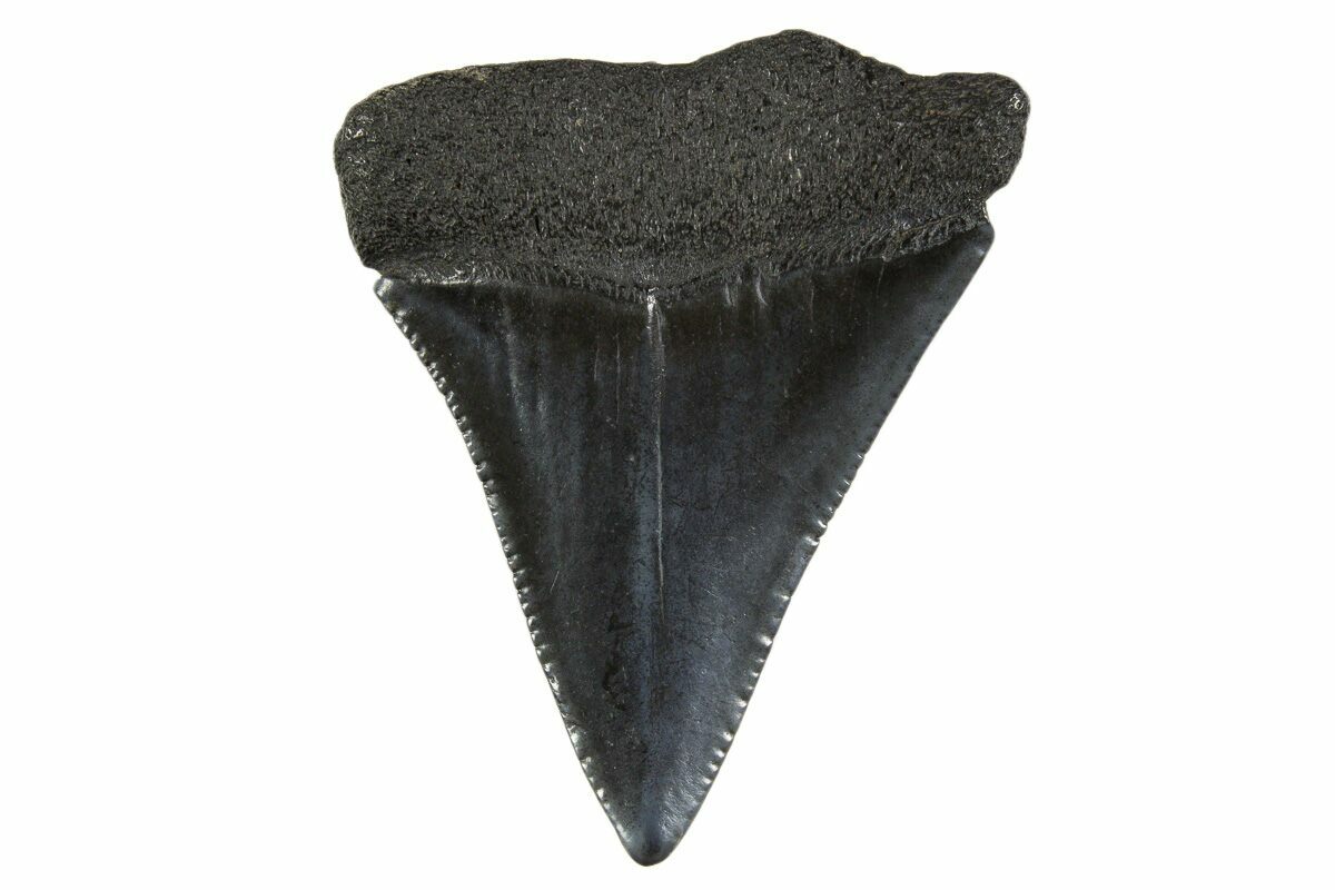 This is a 1.95" long fossil great white shark (Carcharodon carcharias) tooth. It comes from the Hawthorn Formation in South Carolina which is Miocene in age. These fossil great white teeth are much rarer than the megalodon teeth which they are associated with.