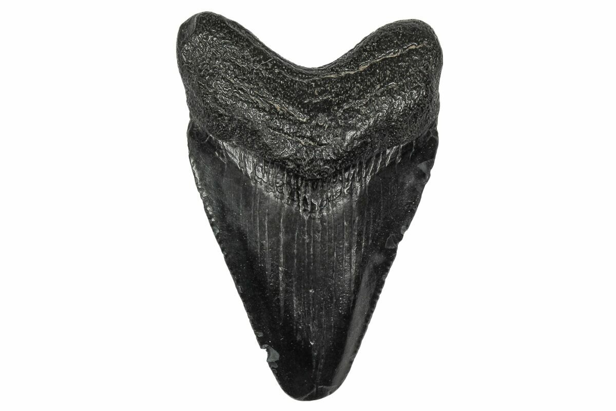 Megalodon had a cosmopolitan (global) distribution and its giant teeth can be found in deposits throughout the world. Some are collected on land in phosphate deposits, while many are collected from rivers and coastlines after eroding out of the rocks. This contributes to the water-worn, polished appearance of many teeth.