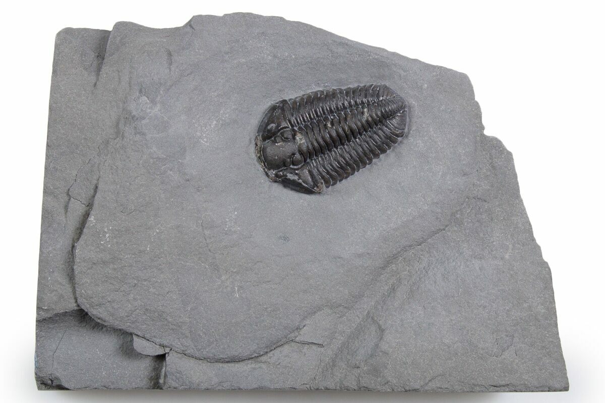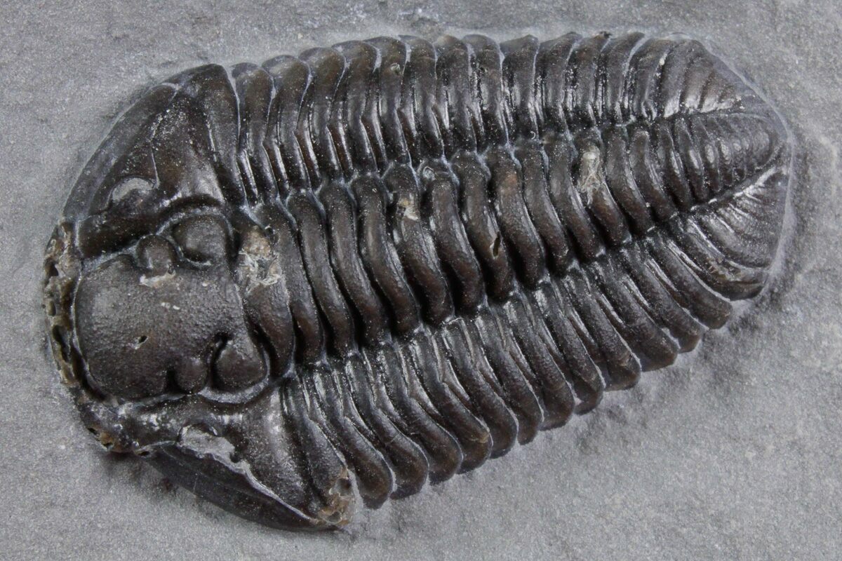 This is a 1" long Calymene niagarensis trilobite from the Rochester Shale at Caleb's Quarry in Orleans County, New York.