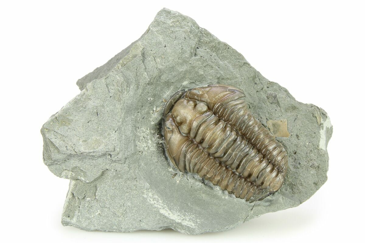 Flexicalymene is often found enrolled, seemingly to protect its softer underside from threats on a sea floor teeming with ancient life and increasingly complex predators. Sealing itself inside the hard carapace may be a protective maneuver, or it may simply be the pose of death.