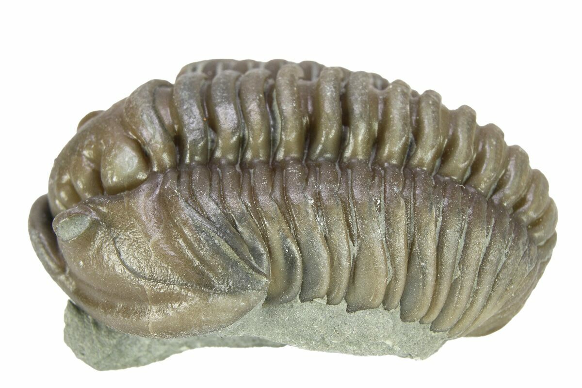 Flexicalymene is often found enrolled, seemingly to protect its softer underside from threats on a sea floor teeming with ancient life and increasingly complex predators. Sealing itself inside the hard carapace may be a protective maneuver, or it may simply be the pose of death.