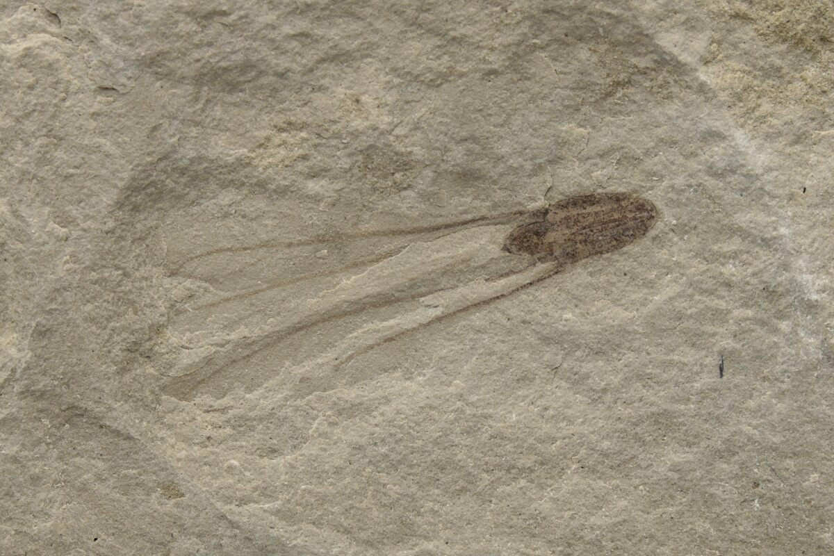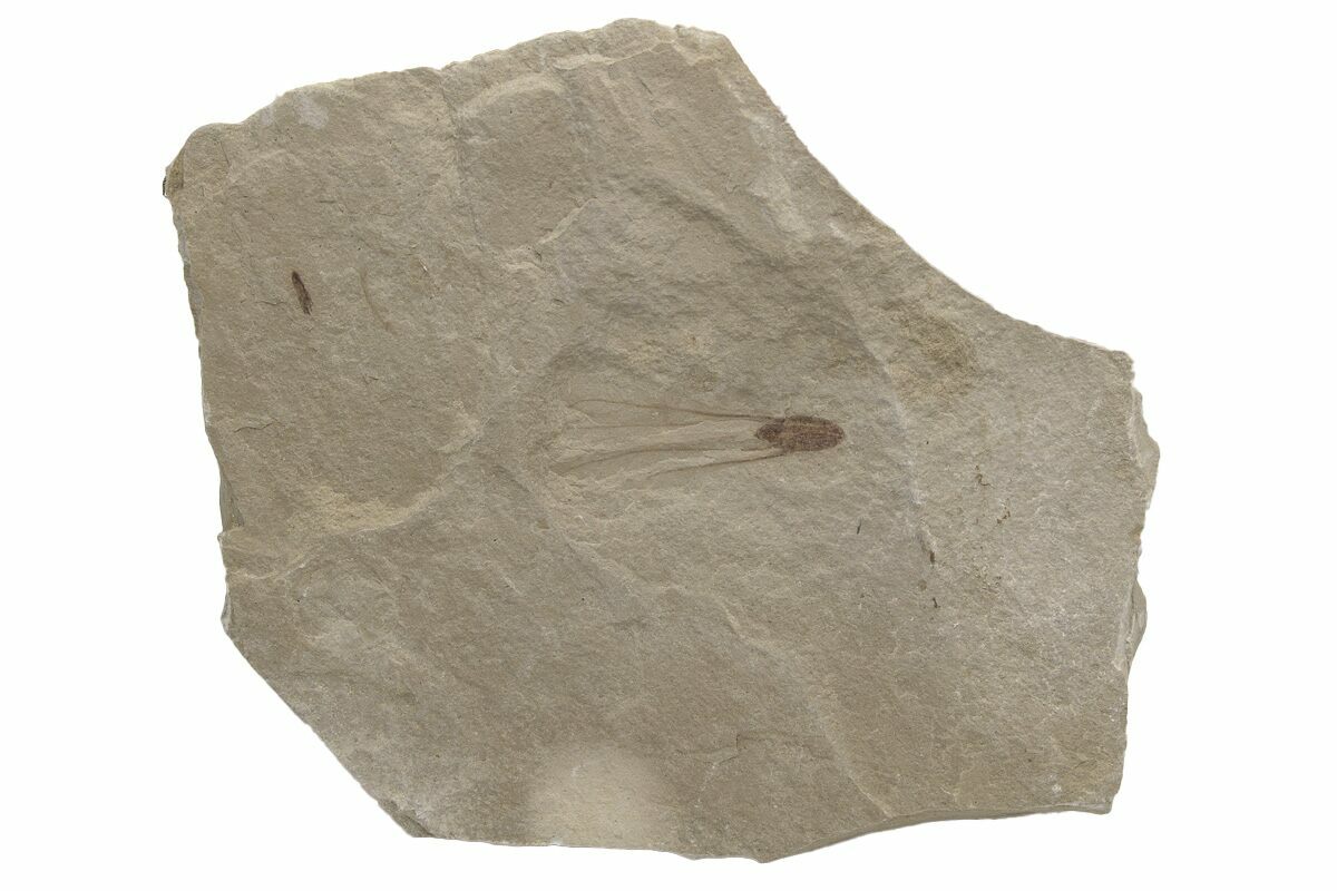 This is a beautifully preserved 1" long fossil seed from the Green River Formation in Uintah County, Utah. Preservation of this specimen is excellent and shows the fossil in great detail. It was labelled as "gnetopsis", however this is very unlikely.