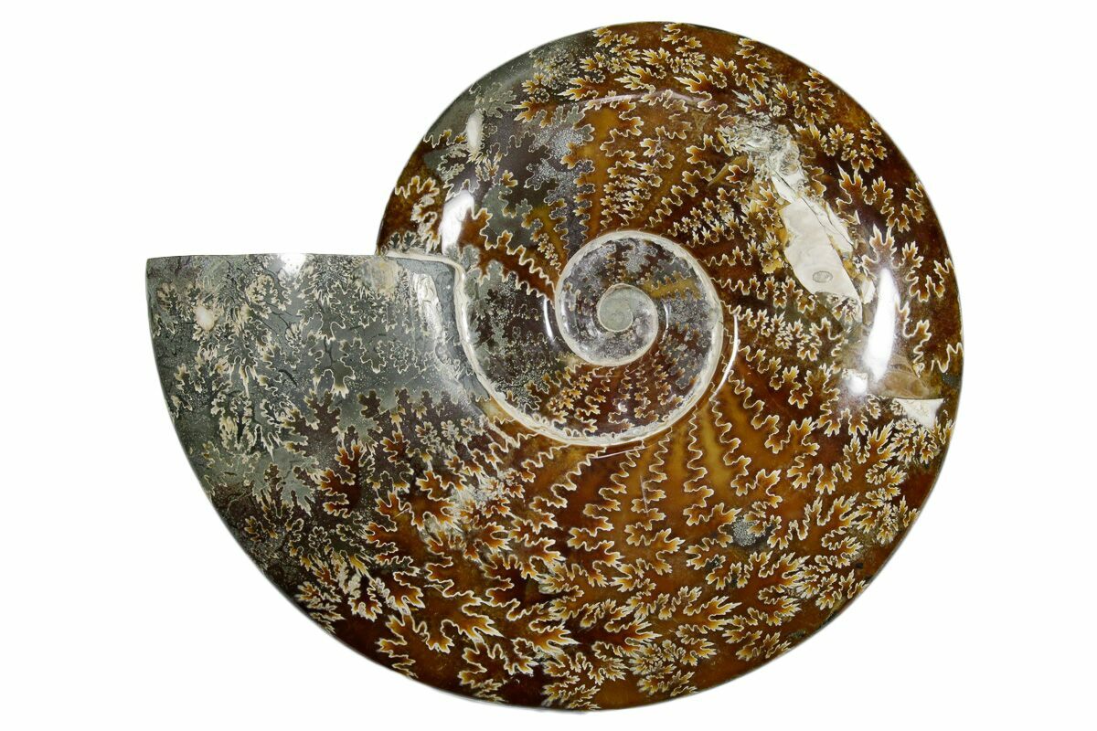 This is a beautiful, 10.1" wide polished Cleoniceras ammonite fossil from Madagascar. It is absolutely gorgeous, displaying the distinctive suture pattern of the Cleoniceras genus. This 110 million year old ammonite is truly a natural work of art and makes a beautiful display piece.