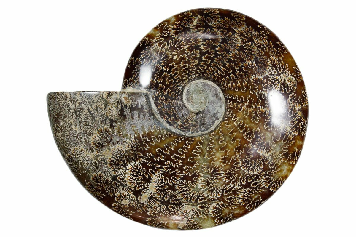 This is a beautiful, 10.2" wide polished Cleoniceras ammonite fossil from Madagascar. It is absolutely gorgeous, displaying the distinctive suture pattern of the Cleoniceras genus. This 110 million year old ammonite is truly a natural work of art and makes a beautiful display piece.