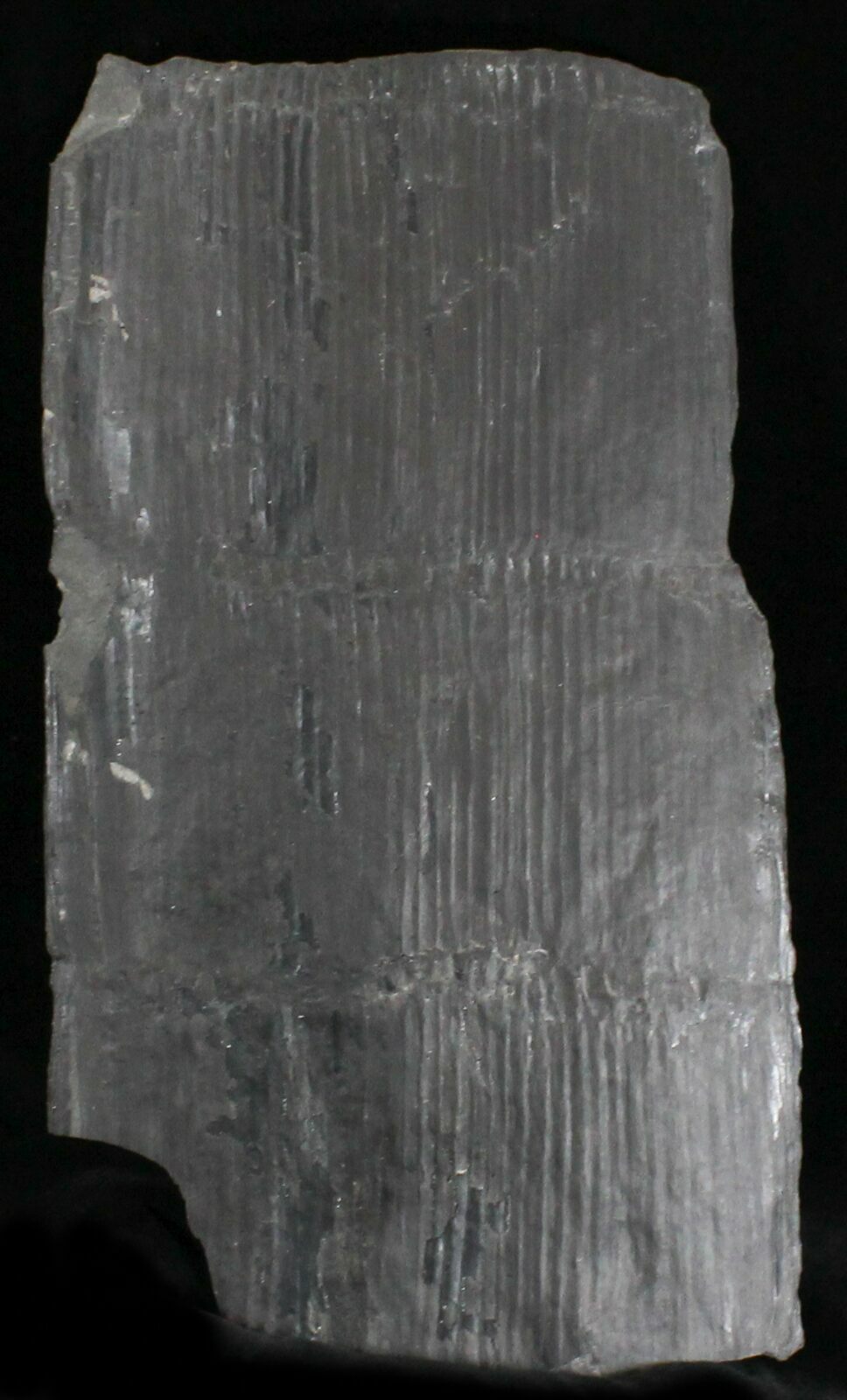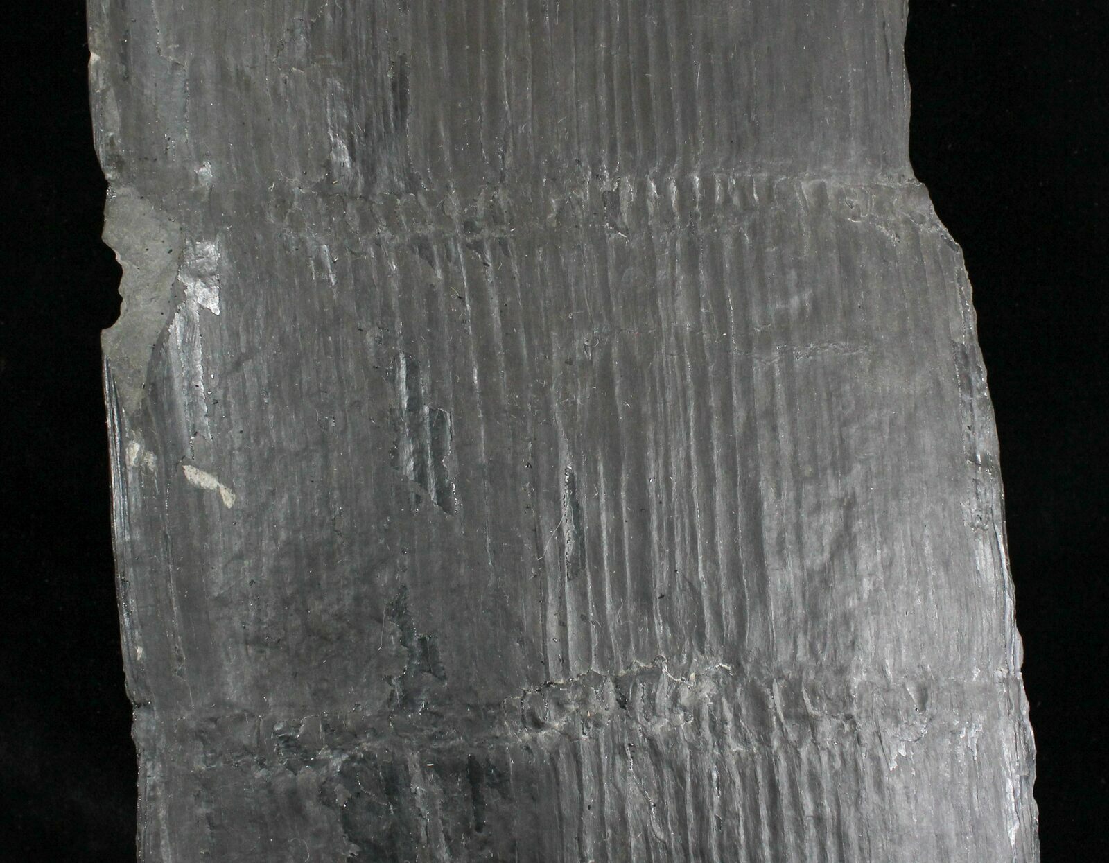 This is a 10.3" long fossilized trunk section of Calmanites cisti, a extinct arborescent (tree-like) horsetail. It was collected from a coal mine near Summersville, West Virginia and is Middle Pennsylvanian in age or approximately 307 million years old. The characteristic rib pattern of the genus is easily seen in this specimen. It has been heavily compressed and is around 5/8" thick in the center.