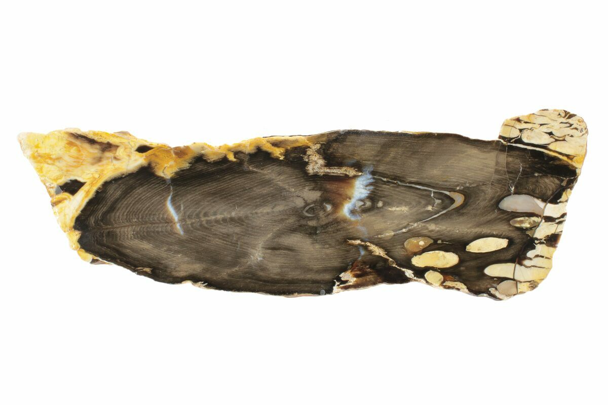 The host wood itself originated from ancient Araucaria trees, but it’s the activity of these shipworms that tells the real story. Their borings reveal that the wood spent time afloat in prehistoric oceans before fossilization, capturing a rare moment where marine and terrestrial environments intersected. As mineral-rich groundwater permeated the buried driftwood, the organic tissue was gradually replaced by silica, preserving both the wood structure and the shipworm tunnels in remarkable detail. The result is a visually stunning fossil that showcases not only the anatomy of an ancient conifer, but also the imprint of the tiny organisms that once lived inside it—making Australian peanut wood a beautiful intersection of biology, geology, and deep-time storytelling.