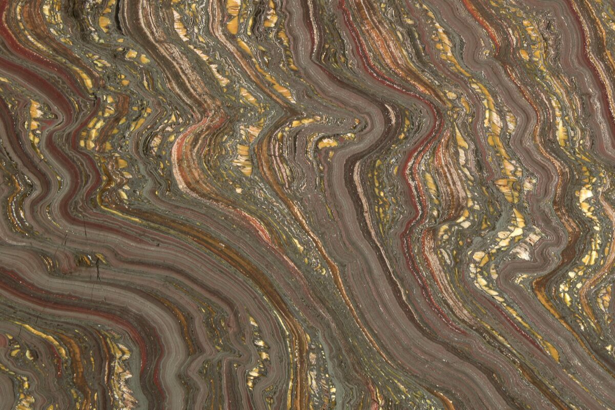 Many believe tiger iron should technically be considered a stromatolite formed by ancient cyanobacteria over two billion years ago. One theory holds that tiger iron is a typical stromatolite that has undergone mineral replacement with iron oxide. Another theory suggests that microbes formed the banded iron directly while the stromatolite was being formed.