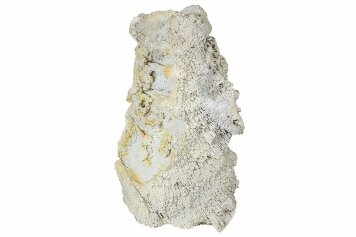 On this specimen, the chalcedony formed in stalactitic masses and in small, botryoidal globes. much of this piece retains the original shape of the coral's skeleton, which is exquisitely enhanced by the agatization. The coral has been cut flat on one side for ease of display.