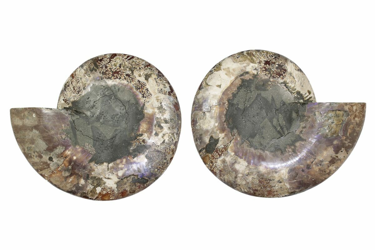 Both polished halves are included and come with a pair of acrylic display stands for easy presentation. The very center of this ammonite is a composite from another specimen.