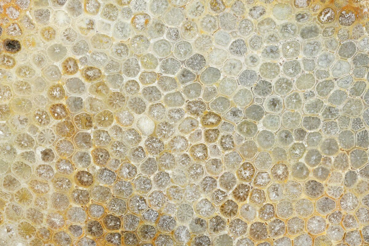 These corals are approximately 20 million years old and are the remains of ancient reefs. Tectonic action has thrust them up forming mountains. As these corals fossilized the original organic material was replaced by silica, iron, manganese and other minerals.