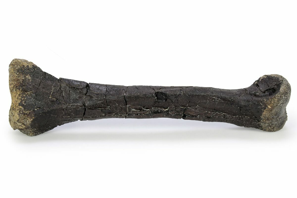 There are multiple repaired cracks through the diaphysis and both epiphyses have undergone some weathering. Gap fill restoration is minimal, making up less than 1% of the entire specimen.