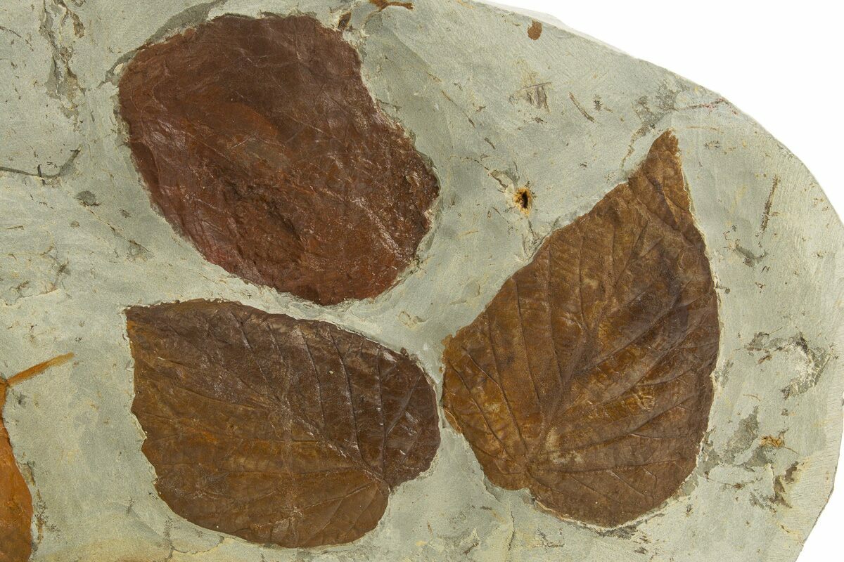 11.6" Wide Plate with Five Fossil Leaves (Two Species) - Montana