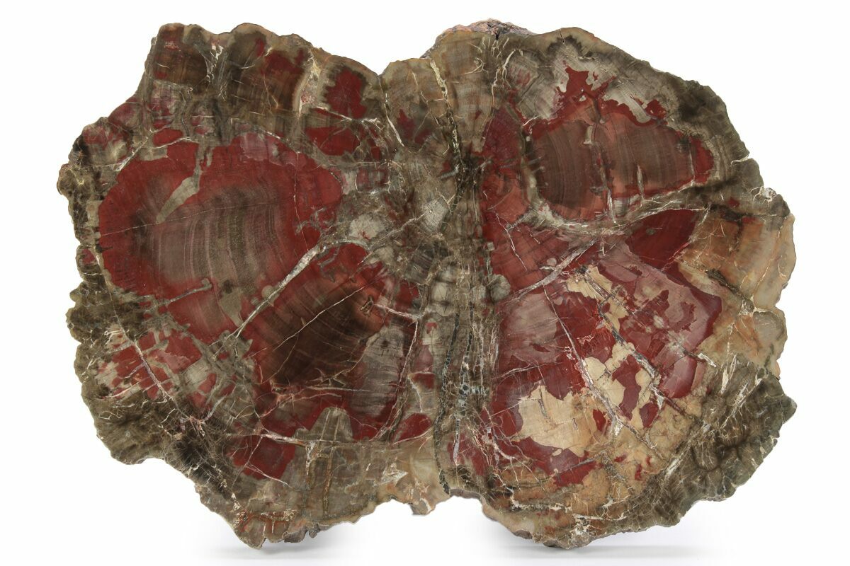 Petrified wood is the name given to wood that has been turned into stone (fossilized) through the process of permineralization. In this process, all of the organic matter becomes replaced by minerals, while much of the original structure, such as tree rings, is retained. For this to happen, the wood needs to be buried in an environment low in oxygen to prevent decomposition and with flowing, mineral-laden water, so minerals may replace structures. The coloration is caused by various minerals/impurities present in the water during fossilization. For example, red colors in many cases can be attributed to iron compounds, greens due to copper, and so on.