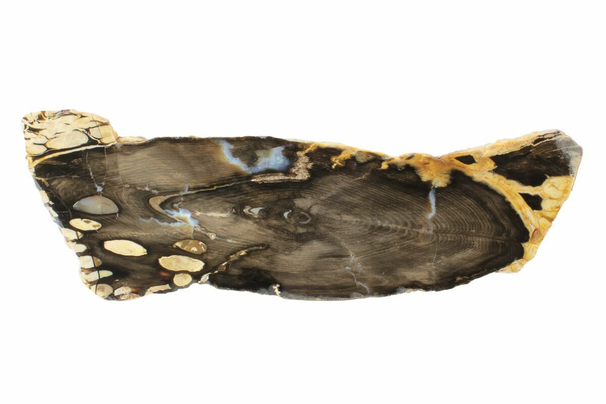 The host wood itself originated from ancient Araucaria trees, but it’s the activity of these shipworms that tells the real story. Their borings reveal that the wood spent time afloat in prehistoric oceans before fossilization, capturing a rare moment where marine and terrestrial environments intersected. As mineral-rich groundwater permeated the buried driftwood, the organic tissue was gradually replaced by silica, preserving both the wood structure and the shipworm tunnels in remarkable detail. The result is a visually stunning fossil that showcases not only the anatomy of an ancient conifer, but also the imprint of the tiny organisms that once lived inside it—making Australian peanut wood a beautiful intersection of biology, geology, and deep-time storytelling.