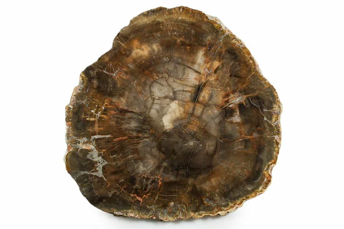 Madagascar petrified wood comes primarily from extensive Triassic-aged deposits in the Mahajanga Basin of northwestern Madagascar, where ancient conifer forests—often attributed to species related to Araucarioxylon—were buried by volcanic ash and floodplain sediments roughly 225–240 million years ago. Over immense spans of time, silica-rich fluids percolated through these sediments, replacing the cellular structure of the wood with chalcedony, jasper, agate, and quartz while preserving growth rings, bark textures, and even microscopic details. The region’s unique geochemistry—especially its iron, manganese, and occasionally copper content—produces the vivid palette Madagascar petrified wood is famous for, including deep brick reds, golden yellows, smoky blacks, and pastel pinks. Many logs are found fully silicified and naturally fractured into large, rounded segments that local artisans cut into slabs, spheres, eggs, and freeforms. These deposits stretch across arid badlands where erosion steadily exposes new material, making Madagascar one of the world’s premier sources of highly colorful, beautifully patterned fossil wood.