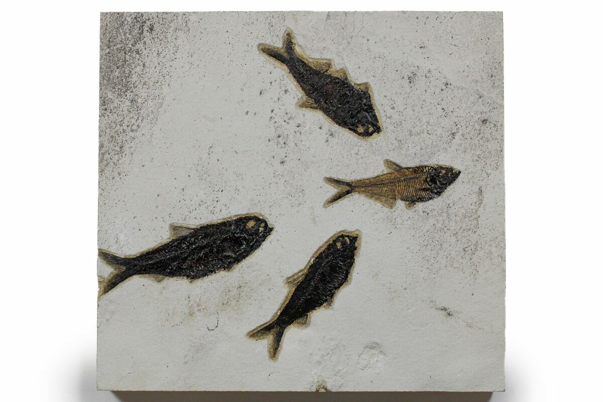 13.3" Plate of Four Fossil Fish (Diplomystus & Knightia) - Wyoming