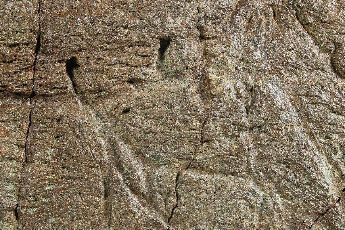 This is a 13" wide section of frill shield from Triceratops horridus, collected from the Hell Creek Formation in Custer County, Montana. The "blood grooves" can be seen in great detail preserved across both sides.