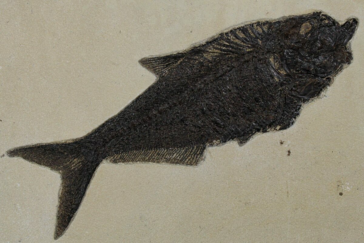 Today the wonderfully preserved fossils of Diplomystus and other Fossil Lake fauna are collected in several private quarries around Kemmerer, Wyoming. The best preserved fish fossils come from the coveted 18 Inch Layer. This layer is collected at night under high-powered lights, enhancing the faint signs of fish under the surface indicating underlying fossils. These “ghosted” fish then must go through many hours of manual preparation to remove the overlying rock and reveal the Green River fauna in all of its glory.