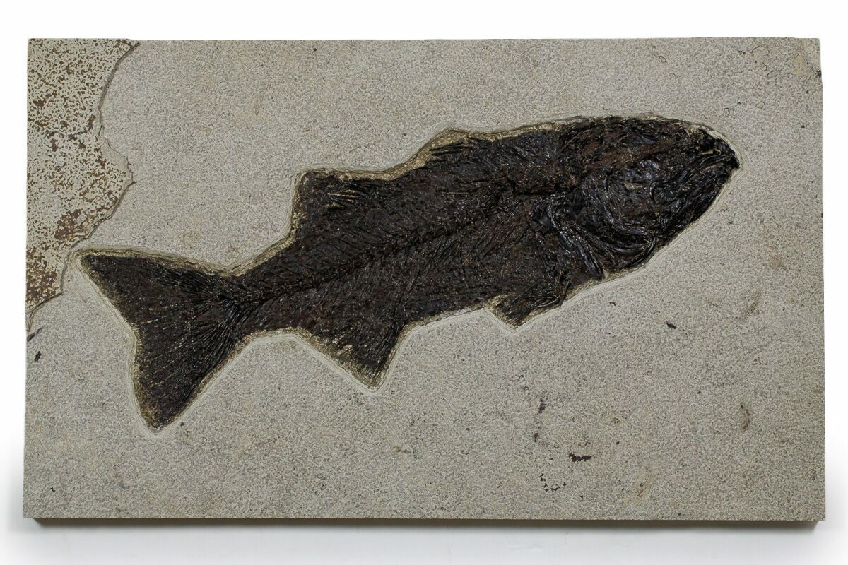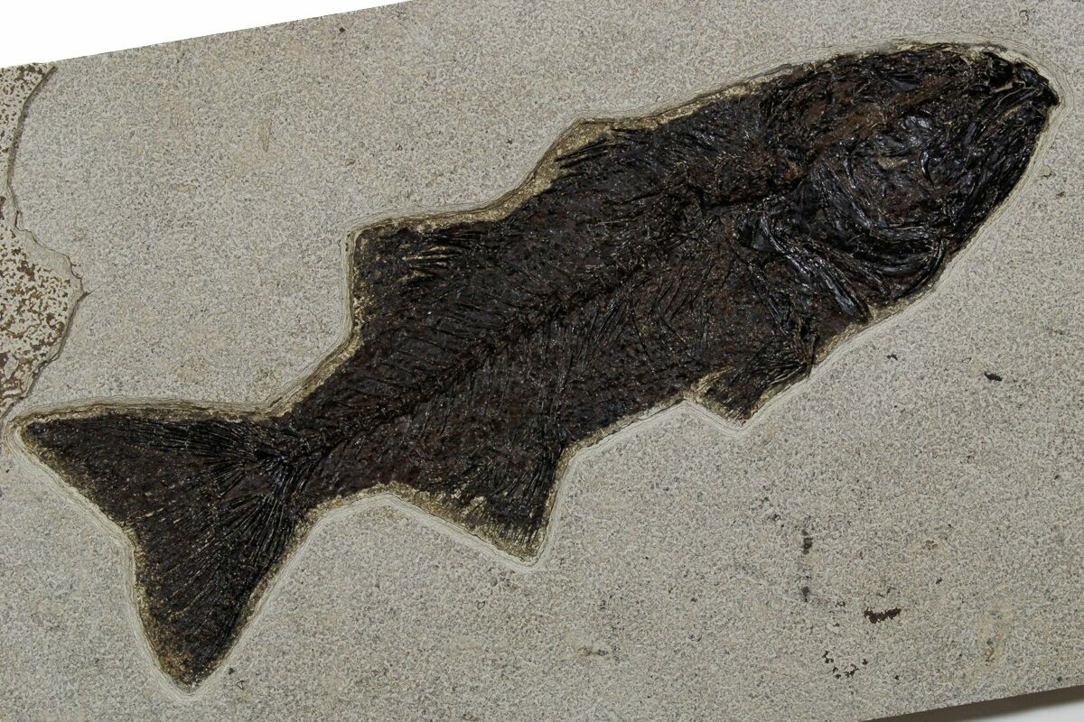 This is a gorgeous 15" long, fossil fish (Mioplosus labracoides) from the Green River Formation of Wyoming. Mioplosus is one of the more uncommon species from this formation. It's nicely centered on a solid, rectangularly cut slab of shale.