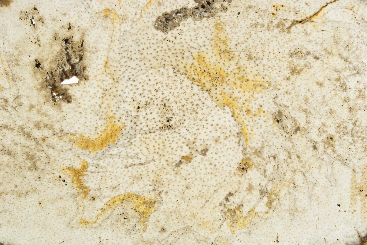 This is an exceptionally well preserved, polished slab of Burmese petrified palmwood (Palmoxylon). The vascular bundles under magnification are fascinating and not quite like other palms seen from Asia. The color contrast in the gemstone that preserved this fossil really makes the structure of the trunk stand out in incredible detail. The polishing work is extremely well done with no dull spots or scuff marks.
