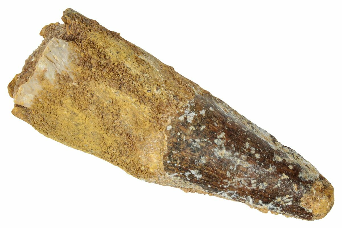 This is a 2.00" long Spinosaurus tooth from the Kem Kem Beds of Morocco. It is Late Cretaceous in age, approximately 95 million years old.