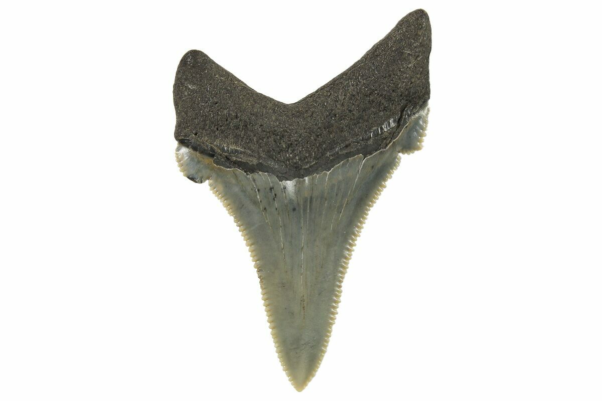 This is a beautiful, serrated, 2.02" long fossil Otodus angustidens shark tooth. Angustidens is believed to be an ancestor of the fearsome megalodon shark, though it did not grow nearly as large.