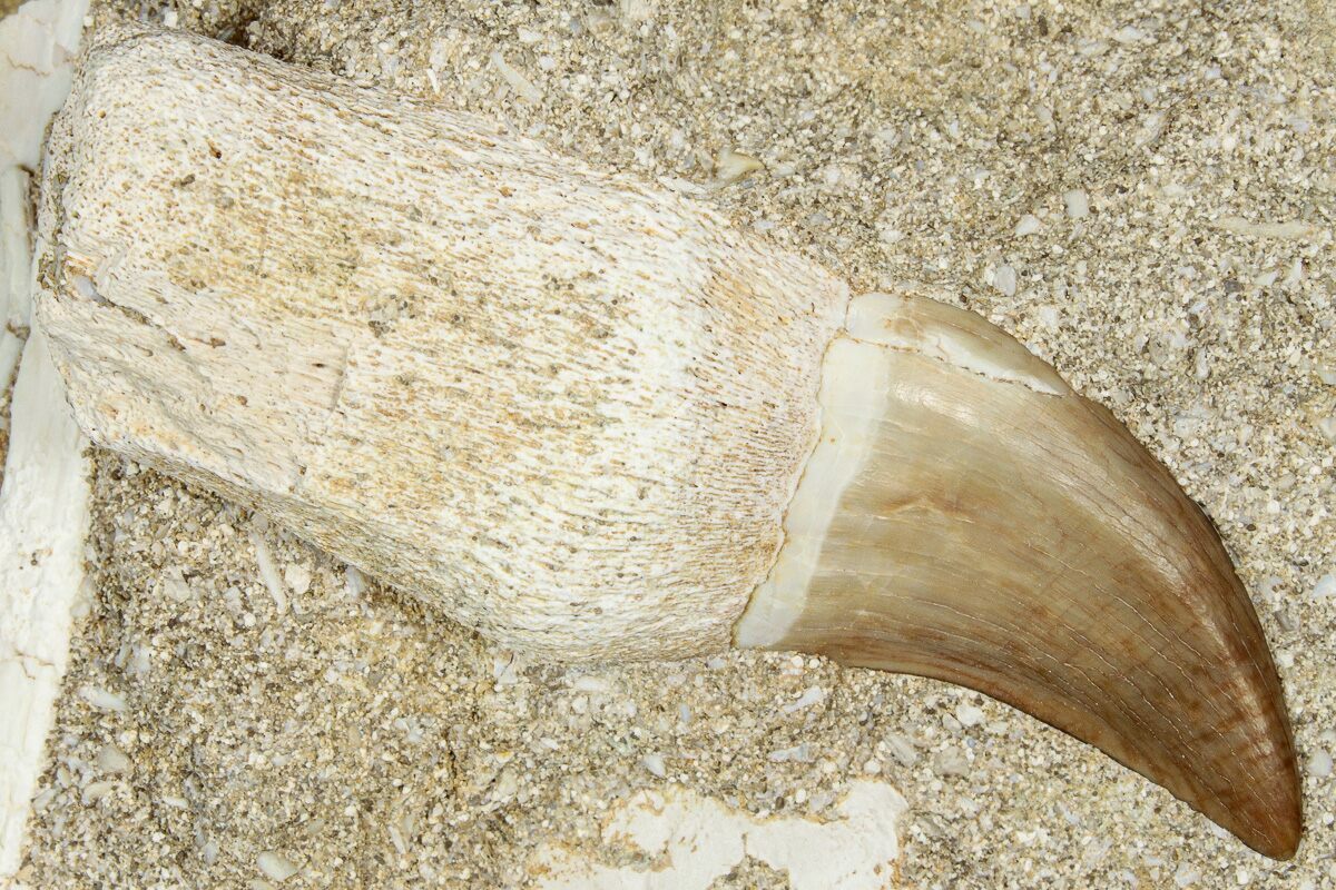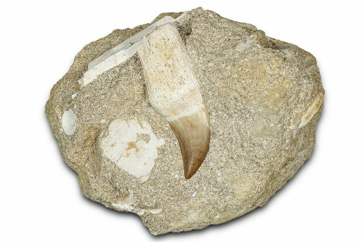 2.05" Fossil Rooted Mosasaur Tooth In Rock - Morocco
