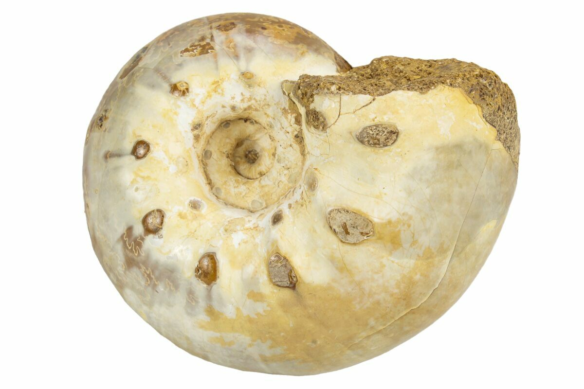 Ammonites were ancient marine cephalopods, similar to today's squids and octopuses, but with a defining feature: their distinctive, tightly coiled spiral shells. These shells, resembling those of modern nautiluses, served as both a protective home and a buoyancy aid, allowing ammonites to navigate the prehistoric seas with ease. First emerging around 240 million years ago in the Triassic Period, ammonites thrived for over 175 million years, adapting through numerous forms and sizes. As predatory creatures, they likely fed on smaller marine organisms, using their tentacles to capture prey. However, their long reign came to an end 65 million years ago at the close of the Cretaceous, coinciding with the mass extinction event that also eliminated the dinosaurs.