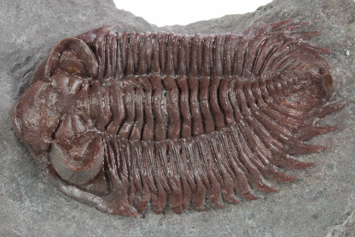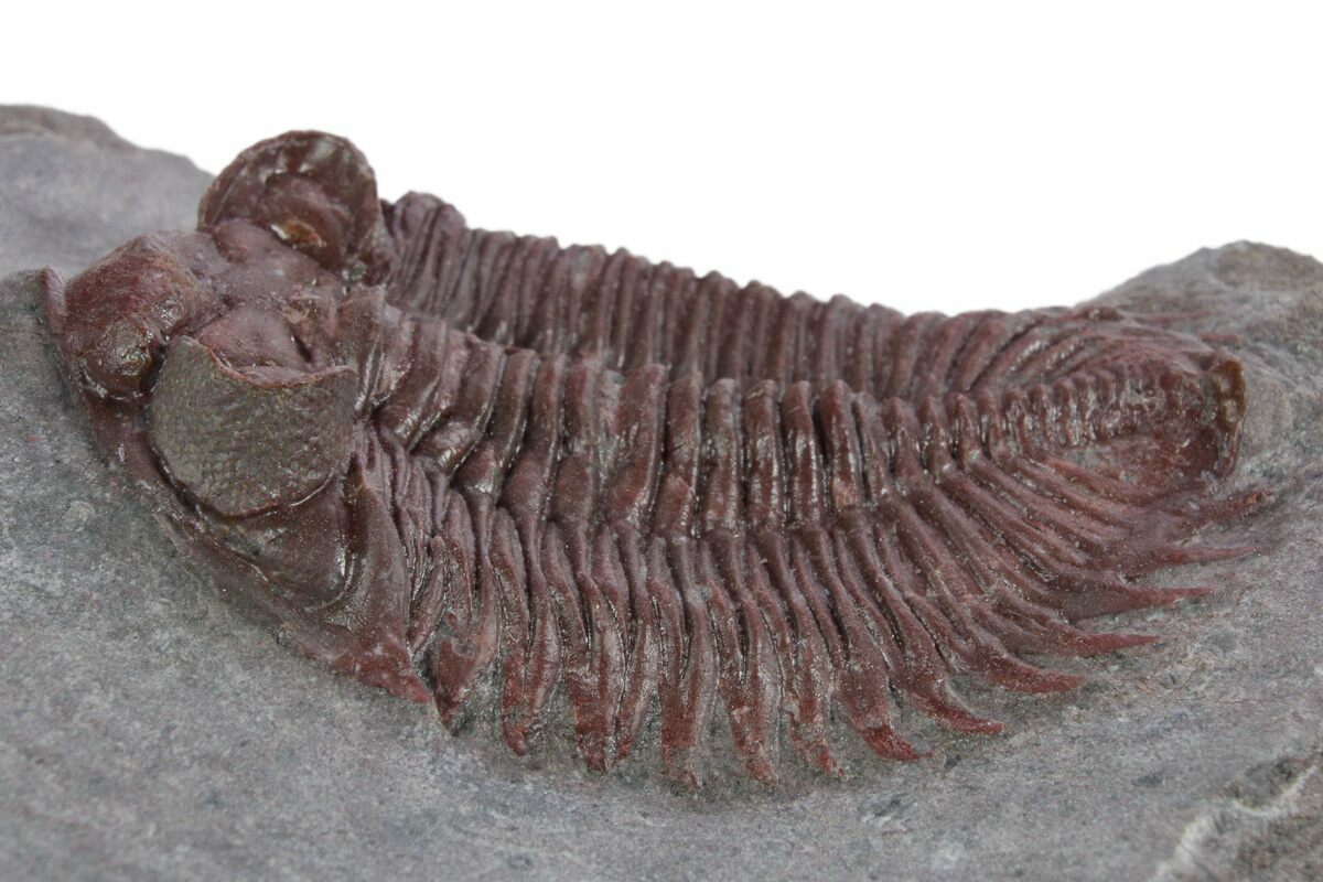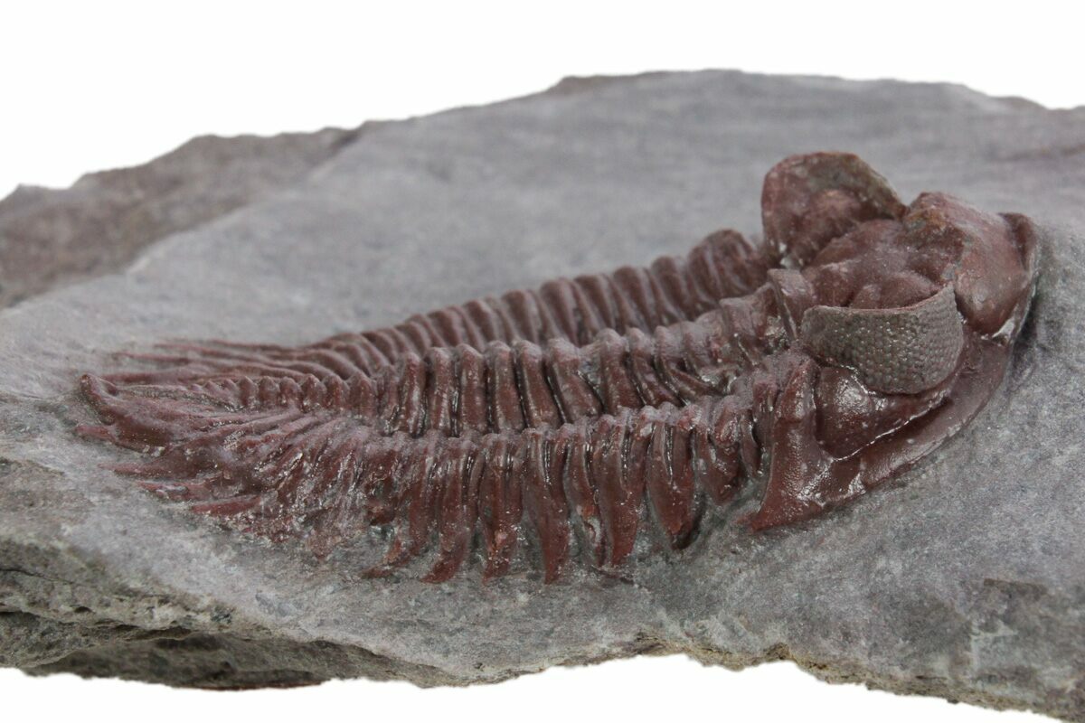 The trilobites were hard to find complete at this location and according to my sources, the locality has been collected out recently, so the there probably won't be many more of these red trilobites coming onto the market.