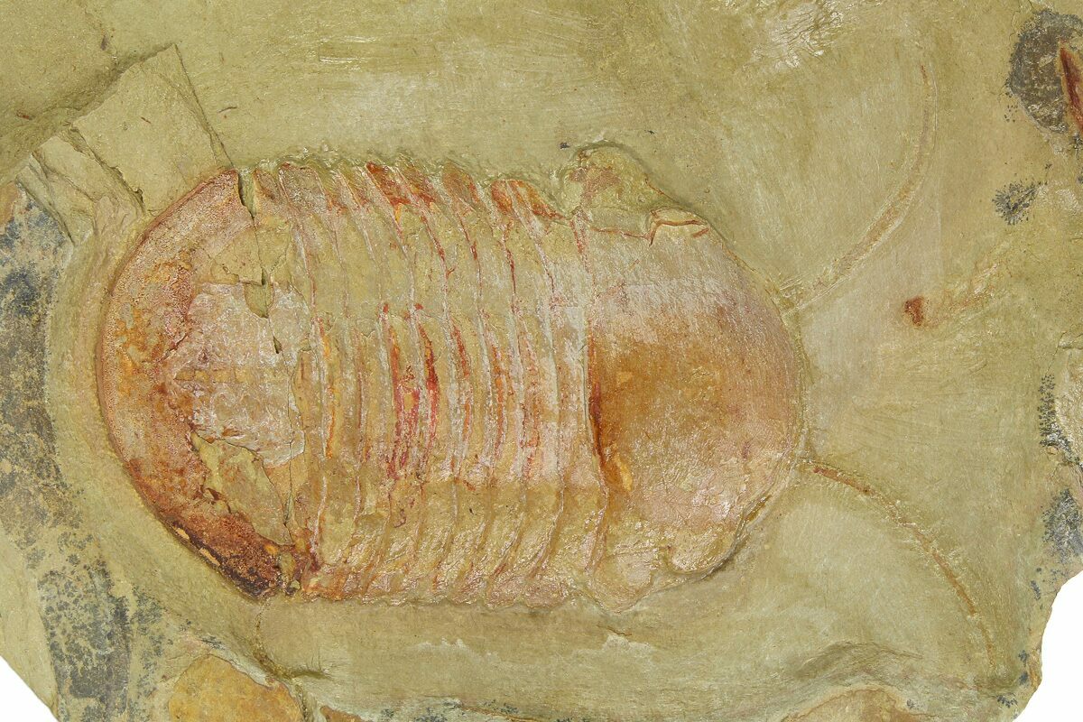 This is a 2.05" Symphysurus trilobite with both antennae preserved. Preservation of soft parts on trilobites is extremely rare, but they are occasionally found in the Fezouata Formation of Morocco. Both antennae are faintly preserved in this specimen.