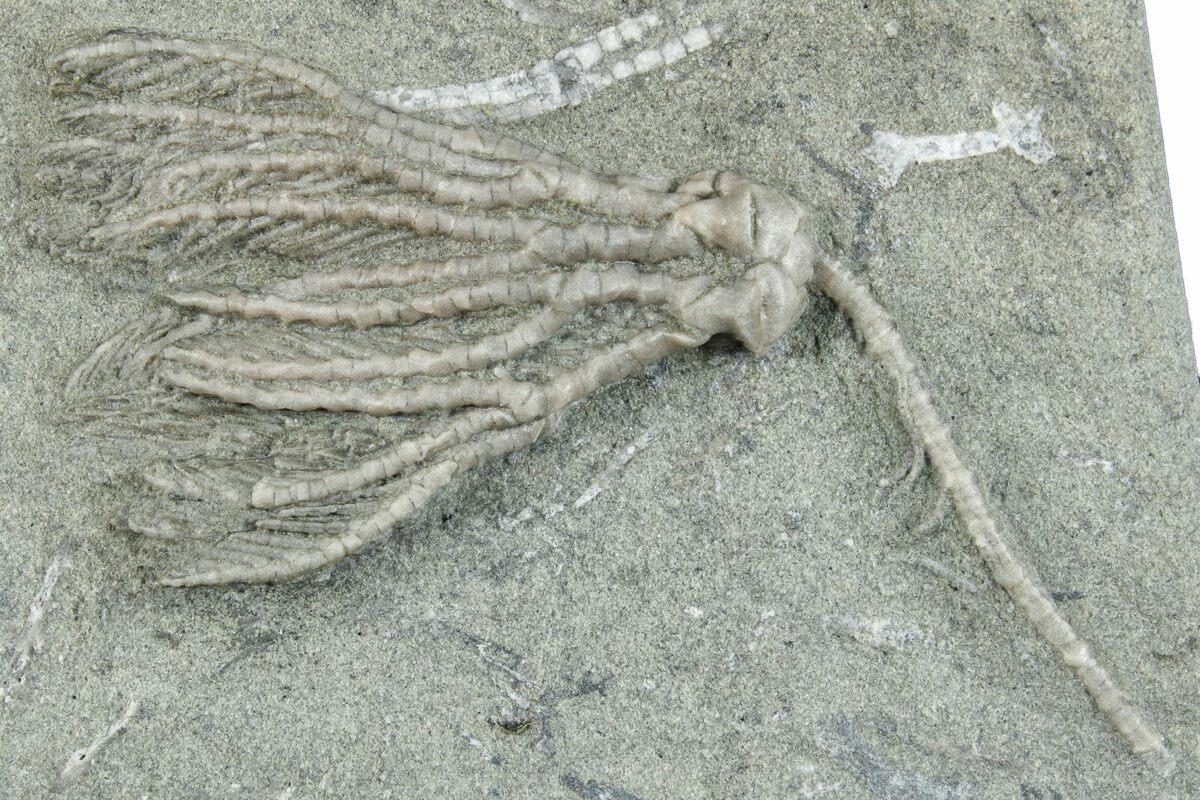 Crinoids from the Ramp Creek Limestone were likely buried in sediment from nearby deltas during storms. The resulting siltstone deposits are soft enough that fossils can be extracted in exquisite, three-dimensional relief.