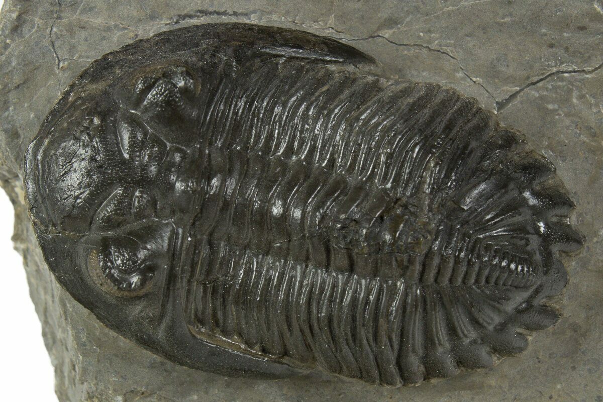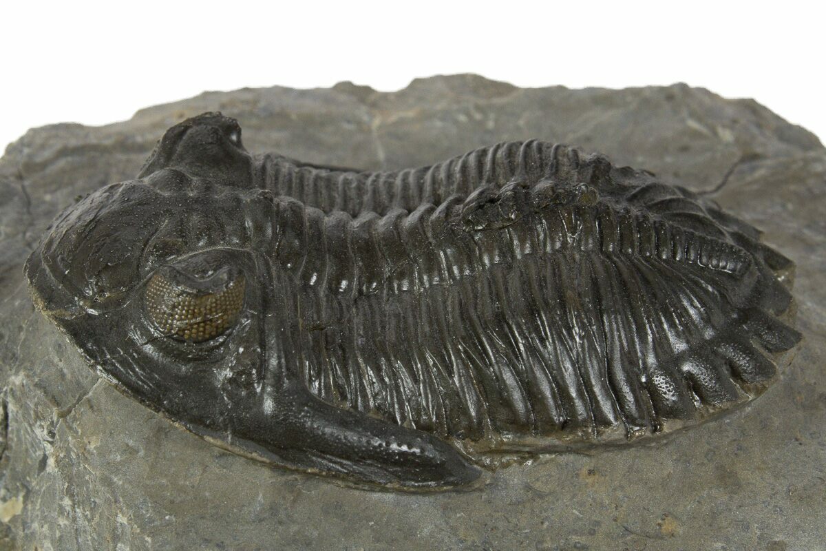2.1" Hollardops Trilobite Fossil - Orange Eye Facets In Left Eye