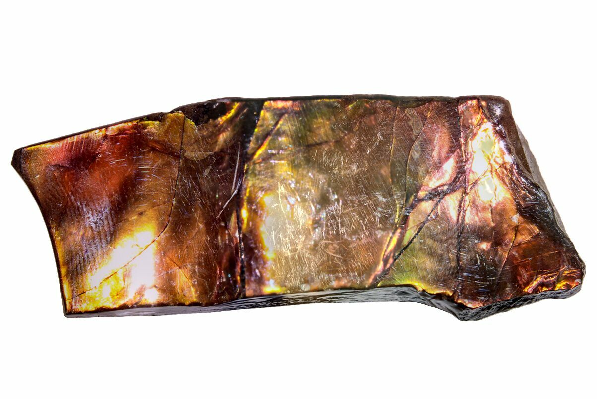 This is a 2.1" wide section of precious ammolite from the Bear Paw Shale of Southern Alberta. It shines with brilliant, iridescence that changes as you view it from different angles.