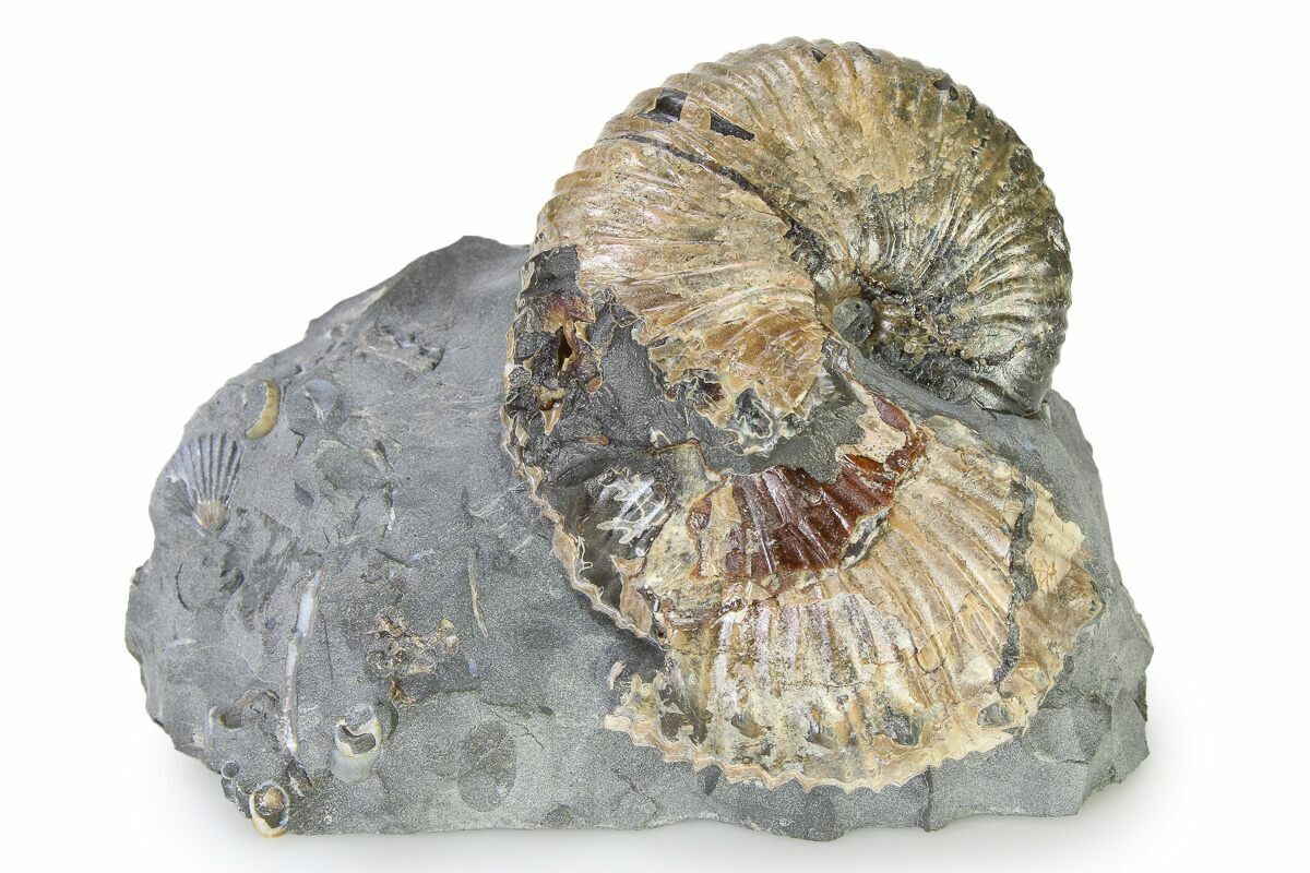 Ammonites were ancient marine cephalopods, similar to today's squids and octopuses, but with a defining feature: their distinctive, tightly coiled spiral shells. These shells, resembling those of modern nautiluses, served as both a protective home and a buoyancy aid, allowing ammonites to navigate the prehistoric seas with ease. First emerging around 240 million years ago in the Triassic Period, ammonites thrived for over 175 million years, adapting through numerous forms and sizes. As predatory creatures, they likely fed on smaller marine organisms, using their tentacles to capture prey. However, their long reign came to an end 65 million years ago at the close of the Cretaceous, coinciding with the mass extinction event that also eliminated the dinosaurs.