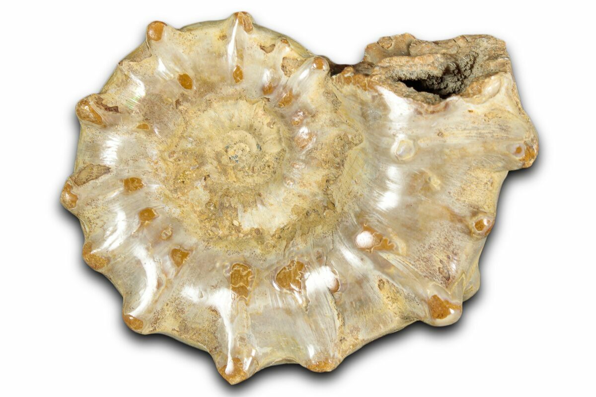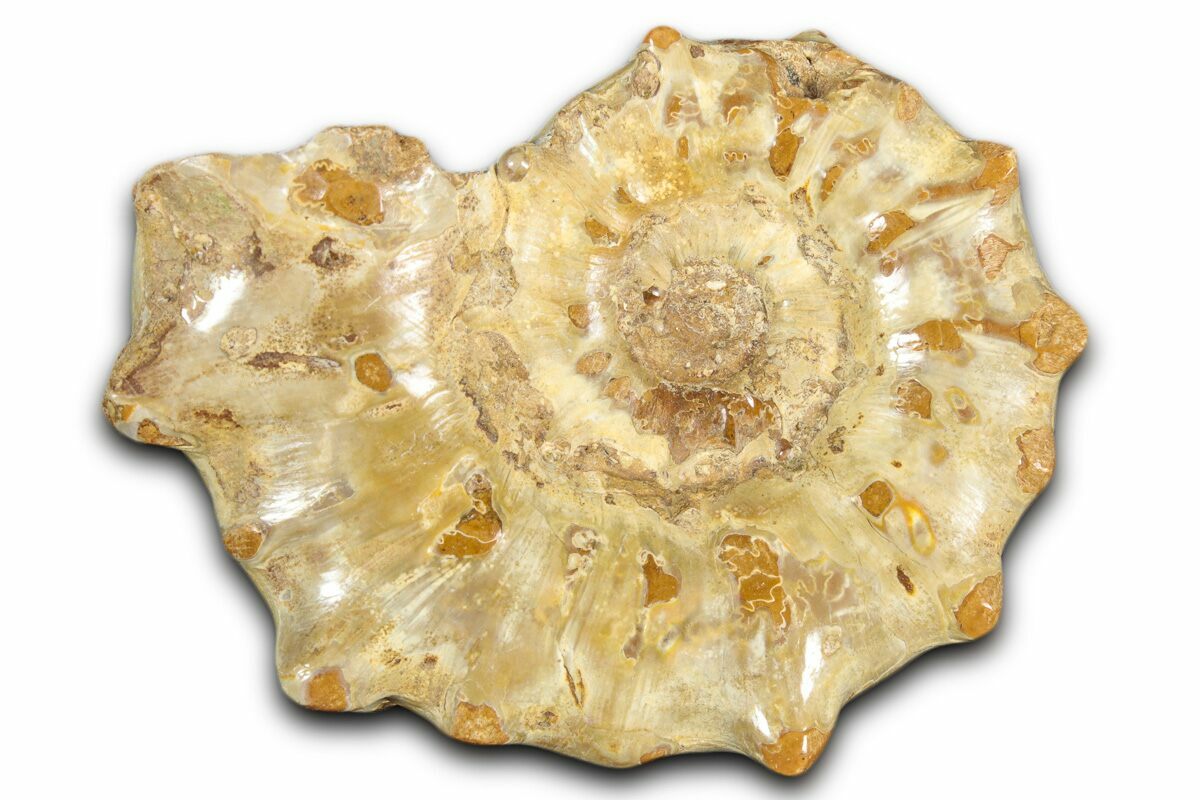 Ammonites were ancient marine cephalopods, similar to today's squids and octopuses, but with a defining feature: their distinctive, tightly coiled spiral shells. These shells, resembling those of modern nautiluses, served as both a protective home and a buoyancy aid, allowing ammonites to navigate the prehistoric seas with ease. First emerging around 240 million years ago in the Triassic Period, ammonites thrived for over 175 million years, adapting through numerous forms and sizes. As predatory creatures, they likely fed on smaller marine organisms, using their tentacles to capture prey. However, their long reign came to an end 65 million years ago at the close of the Cretaceous, coinciding with the mass extinction event that also eliminated the dinosaurs.