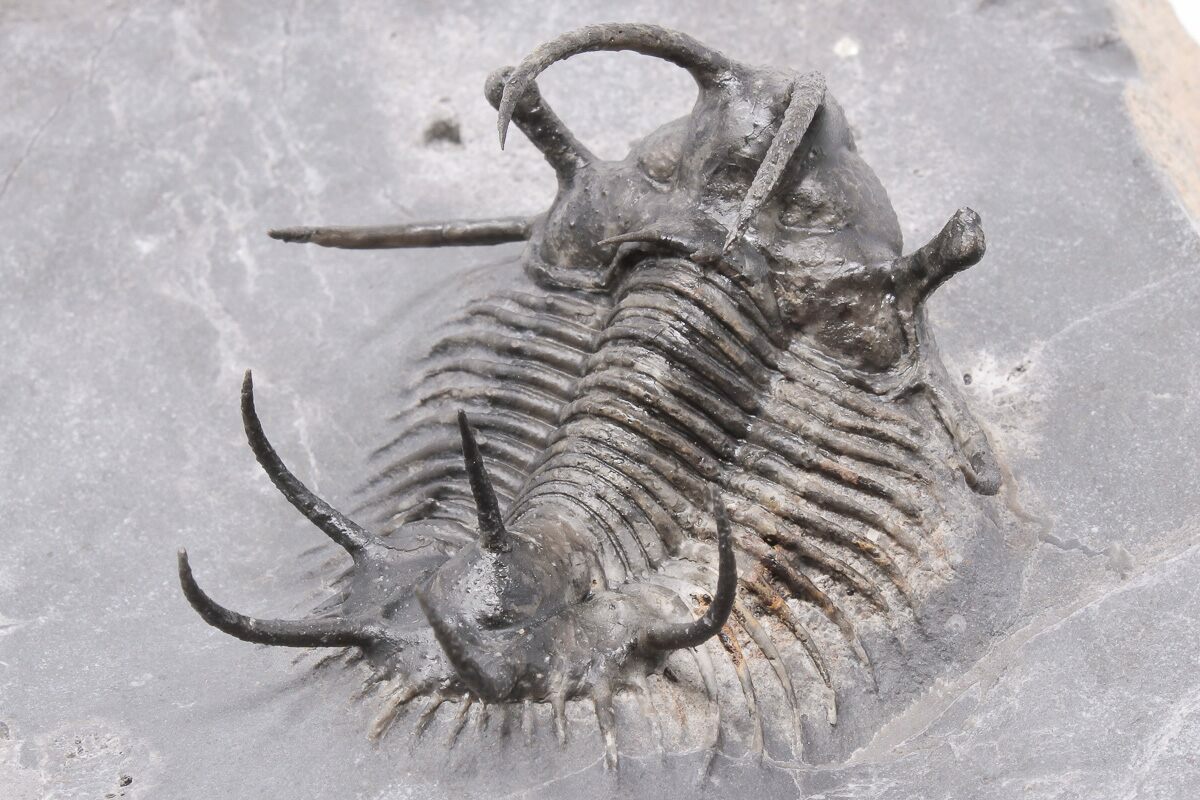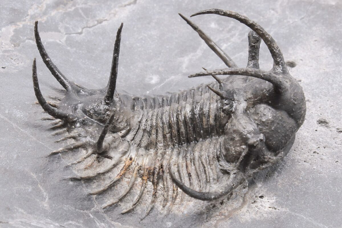 Now this is one alien looking trilobite; it's almost hard to imagine that it was once alive inhabiting our oceans. It's a Ceratarges aries from the Middle Devonian limestone of Morocco. One can imagine that the large spines may have served as defensive protection against fish that had just begun to develop hardened jaws and likely had trilobites on the dinner menu.