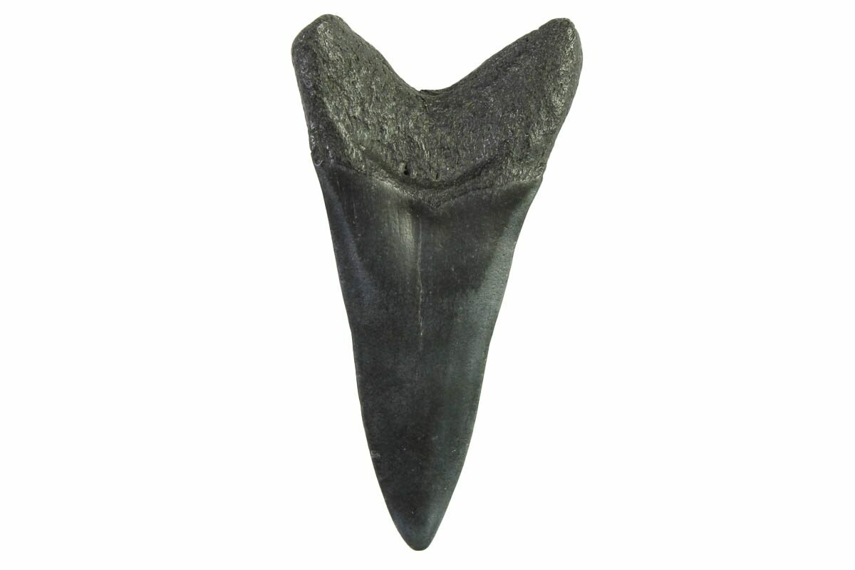 This is a 2.10" long fossil white shark (Carcharodon (Cosmopolitodus) sp.) tooth from the Hawthorn Formation. It was collected in South Carolina after it eroded out of the Hawthorn Formation.