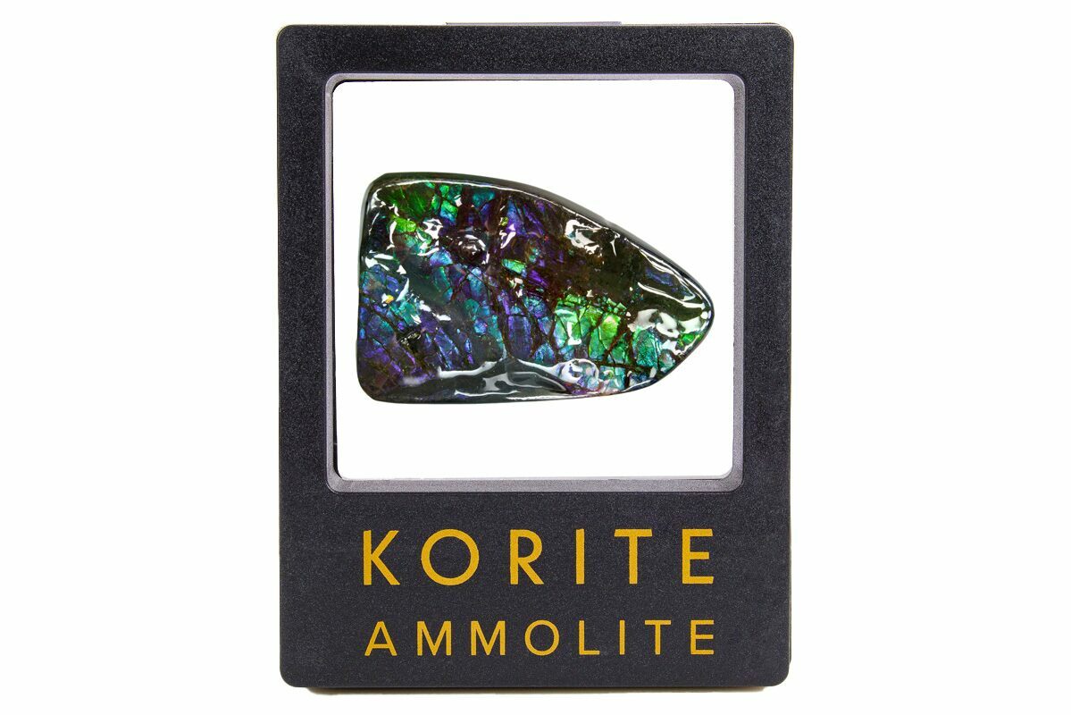 Ammolite is an opal-like gemstone found primarily in Alberta, Canada. It is a kind of fossilized shell from ammonites, which in turn are composed primarily of aragonite, the same mineral contained in nacre (mother-of-pearl). The shell's microstructures are often preserved. In 1981, ammolite was given official gemstone status by the World Jewellery Confederation (CIBJO).
