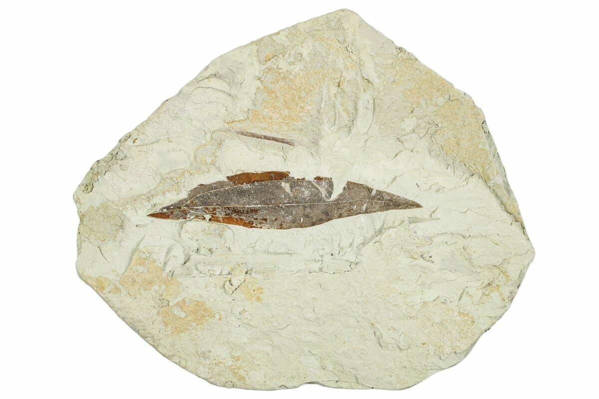 This is a 2.15" long fossil leaf (Daphnogene (Cinnamomum) lanceolatum) collected from Miocene-aged deposits near Augsburg, Germany. This is part of an older collection our team recently acquired.